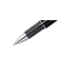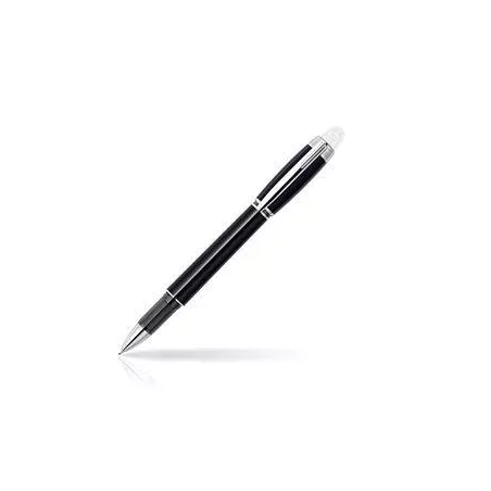 Agrafe platinée et hautement polie, gravée du nom Montblanc et du numéro de série, attributs platinés hautement polis, résine précieuse noire, emblème Montblanc en suspension dans le sommet transparent du capuchon.