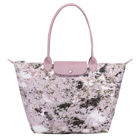 inspiré par l'origami, longchamp crée le pliage, un sac léger et devenu culte dans le monde entier.cette saison, le pliage joue avec un imprimé floral. travaillé comme un faux-uni dans une gabardine de coton, ce romantique camouflage rehaussé de cuir de russie rose pâle vient apporter féminité et fraicheur à la ligne.