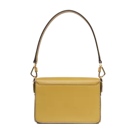 - Design : Sac à rabat orné d'un bijou double L en facettes 3D avec finition dorée.